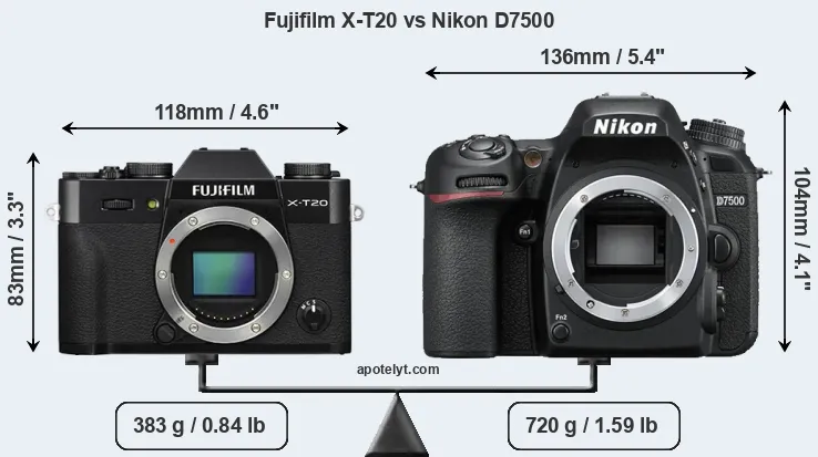 Size Fujifilm X-T20 vs Nikon D7500