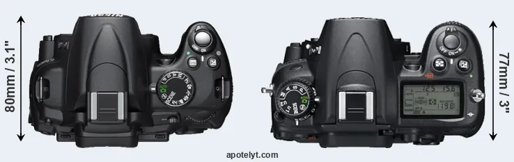 | 2. | Nikon D7000 | 132 mm | 105 mm | 77 mm | 780 g | 1050 | Y | Sep 2010 | US$ 1 499 | ebay.com | |