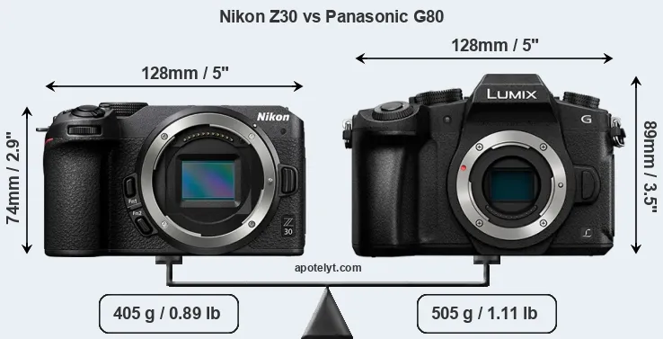 Size Nikon Z30 vs Panasonic G80