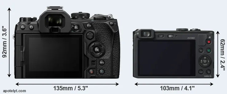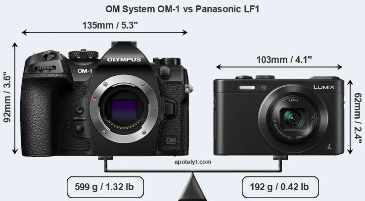 Die physische Größe und das Gewicht der OM System OM-1 und der Panasonic LF1 werden in der nachfolgenden Graphik illustriert. Die beiden Kameras werden entsprechend ihrer relativen Größe dargestellt. Alle Größenangaben sind auf den nächsten Millimeter gerundet.