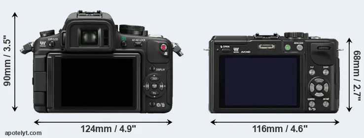 | 5. | Panasonic G1 | 124 mm | 84 mm | 45 mm | 360 g | 410 | n | Sep 2008 | US$ 599 | ebay.com | |