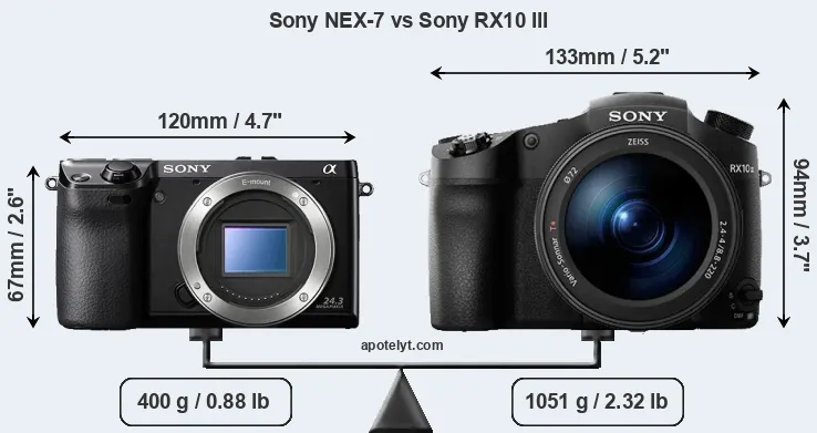 Size Sony NEX-7 vs Sony RX10 III