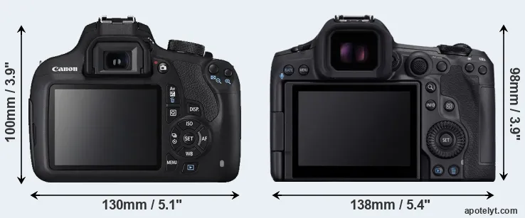 Más allá de esta instantánea de las funciones y características principales, ¿cuáles son las diferencias entre la Canon EOS 1200D y la Canon EOS R5 Mark II? ¿Cuál camara deberías comprar? Siga leyendo para descubrir cómo se comparan estas dos cámaras con respecto al tamaño de su cuerpo y otras caracteristicas.