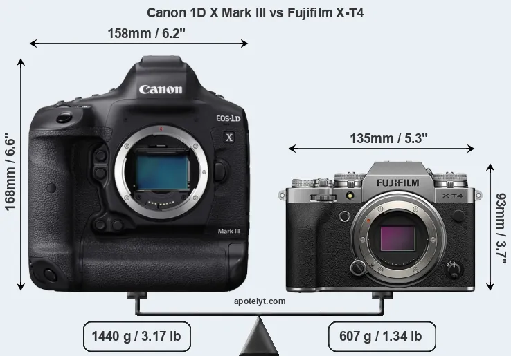 Size Canon 1D X Mark III vs Fujifilm X-T4