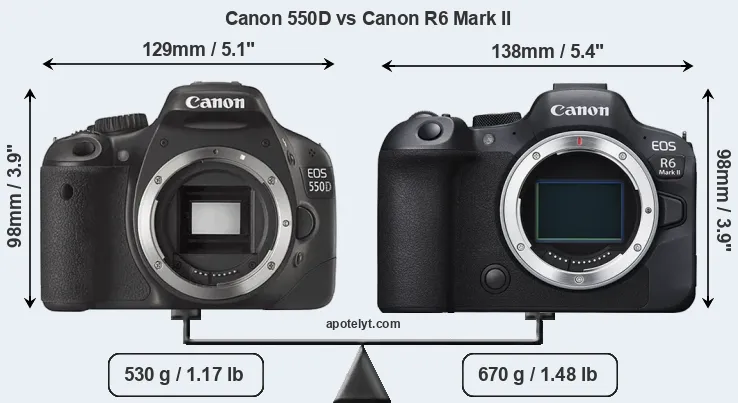 Size Canon 550D vs Canon R6 Mark II
