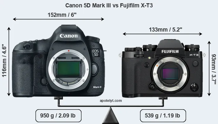 Size Canon 5D Mark III vs Fujifilm X-T3