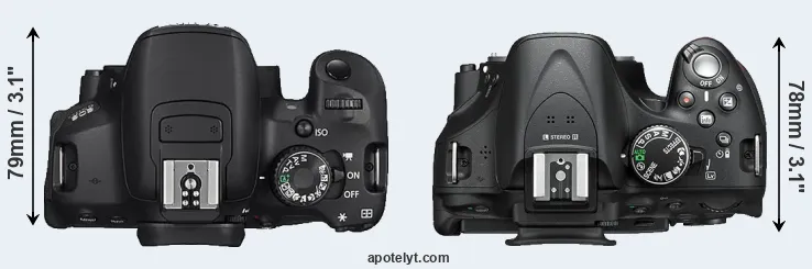 | 1. | Canon 650D | 133 mm | 100 mm | 79 mm | 575 g | 440 | n | jun 2012 | US$ 849 | ebay.com | |