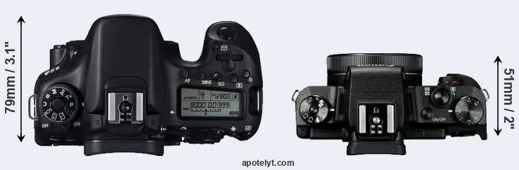 | 8. | Canon 80D | 139 mm | 105 mm | 79 mm | 730 g | 960 | Y | feb 2016 | US$ 1 199 | ebay.com | |