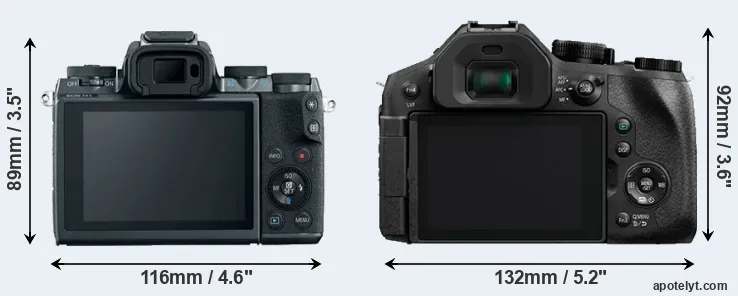 Más allá de esta instantánea de las funciones y características principales, ¿cuáles son las diferencias entre la Canon EOS M5 y la Panasonic Lumix DMC-FZ330? ¿Cuál camara deberías comprar? Siga leyendo para descubrir cómo se comparan estas dos cámaras con respecto al tamaño de su cuerpo y otras caracteristicas.
