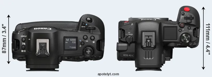 La Canon EOS R1 y la Canon EOS R5 C son dos cámaras digitales que fueron reveladas al público, respectivamente, en julio de 2024 y enero de 2022. Ambas son cámaras cámara de objectivos intercambiables sin espejo, que están equipados con un sensor de fotograma completo. La R1 tiene una resolución de 24,0 megapíxeles, mientras que la R5 C proporciona 44,8 MP.