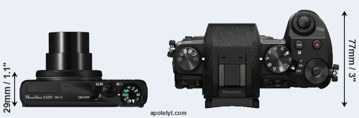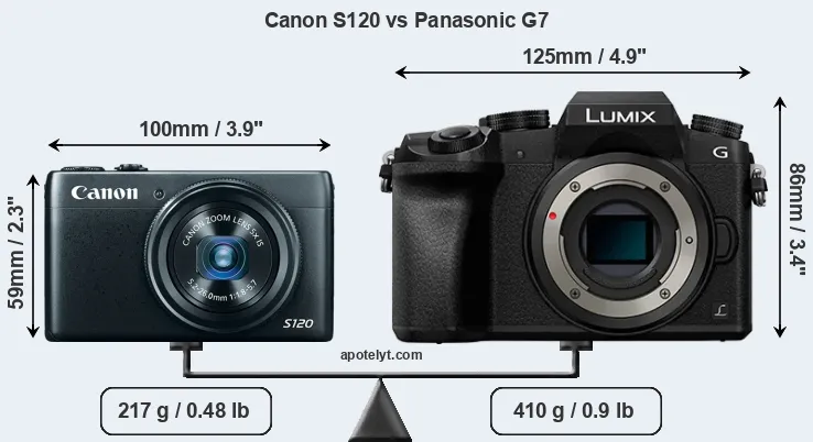 La Canon PowerShot S120 y la Panasonic Lumix DMC-G7 son dos cámaras digitales que fueron reveladas al público, respectivamente, en agosto de 2013 y mayo de 2015. La S120 es una cámara compacta con objectivo incorporada, mientras que la G7 es una cámara de objectivos intercambiables sin espejo. Las cámaras son equipados con un sensor de 1/1.7 pulgada (S120) y un sensor de cuatro tercios (G7). La Canon tiene una resolución de 12,0 megapíxeles, mientras que la Panasonic proporciona 15,8 MP.