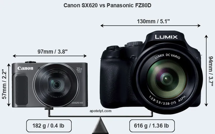 Size Canon SX620 vs Panasonic FZ80D