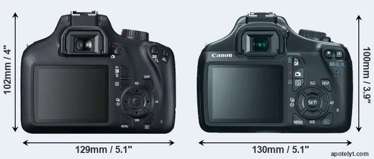 | 8. | Canon T5 | 130 mm | 100 mm | 78 mm | 480 g | 500 | n | feb 2014 | US$ 449 | ebay.com | |