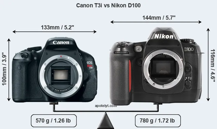 Size Canon T3i vs Nikon D100