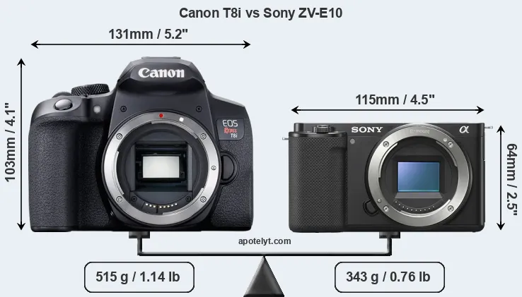 Size Canon T8i vs Sony ZV-E10