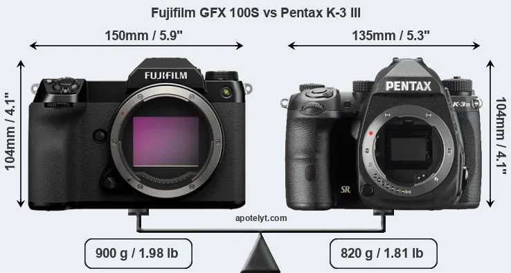 Size Fujifilm GFX 100S vs Pentax K-3 III