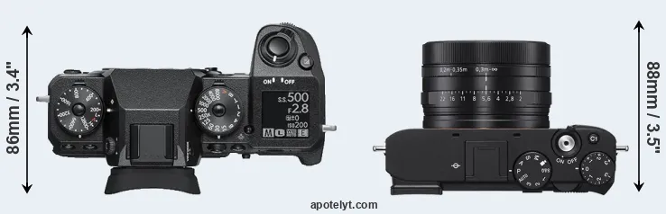 | 10. | Fujifilm X100V | 128 mm | 75 mm | 53 mm | 478 g | 420 | Y | feb 2020 | US$ 1 399 | ebay.com | |