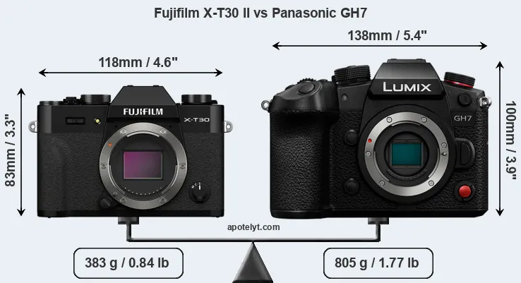 Size Fujifilm X-T30 II vs Panasonic GH7