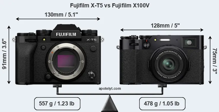 Size Fujifilm X-T5 vs Fujifilm X100V