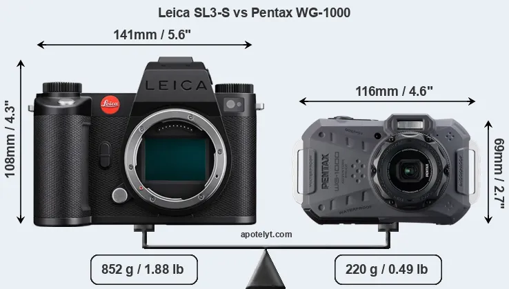 Más allá de esta instantánea de las funciones y características principales, ¿cuáles son las diferencias entre la Leica SL3-S y la Pentax WG-1000? ¿Cuál camara deberías comprar? Siga leyendo para descubrir cómo se comparan estas dos cámaras con respecto al tamaño de su cuerpo y otras caracteristicas.