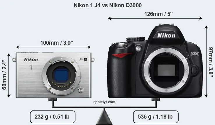 Size Nikon 1 J4 vs Nikon D3000