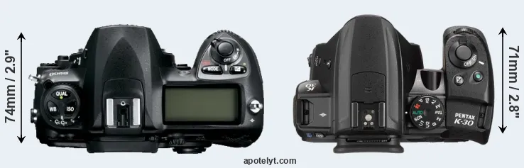 | 2. | Pentax K-30 | 130 mm | 97 mm | 71 mm | 650 g | 410 | Y | may 2012 | US$ 849 | ebay.com | |