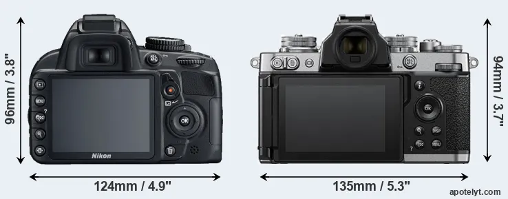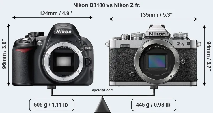 Size Nikon D3100 vs Nikon Z fc