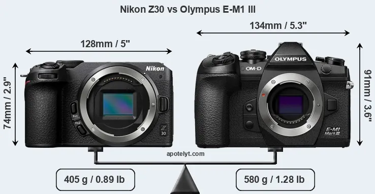 La Nikon Z30 y la Olympus OM-D E-M1 Mark III son dos cámaras digitales que fueron reveladas al público, respectivamente, en junio de 2022 y febrero de 2020. Ambas son cámaras cámara de objectivos intercambiables sin espejo, que están equipados con un sensor de fotograma APS-C (Z30) y un sensor de cuatro tercios (E-M1 III). La Nikon tiene una resolución de 20,7 megapíxeles, mientras que la Olympus proporciona 20,2 MP.