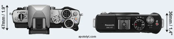 La Olympus OM-D E-M10 Mark II y la Panasonic Lumix DMC-GF1 son dos cámaras digitales que fueron reveladas al público, respectivamente, en agosto de 2015 y septiembre de 2009. Ambas son cámaras cámara de objectivos intercambiables sin espejo, que están equipados con un sensor de cuatro tercios. La Olympus tiene una resolución de 15,9 megapíxeles, mientras que la Panasonic proporciona 12,0 MP.