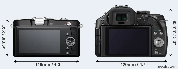 La Olympus PEN E-PM1 y la Panasonic Lumix DMC-G5 son dos cámaras digitales que fueron reveladas al público, respectivamente, en junio de 2011 y julio de 2012. Ambas son cámaras cámara de objectivos intercambiables sin espejo, que están equipados con un sensor de cuatro tercios. La Olympus tiene una resolución de 12,2 megapíxeles, mientras que la Panasonic proporciona 15,9 MP.