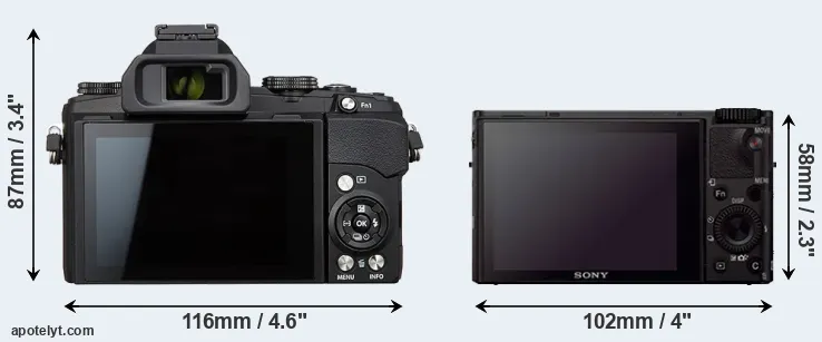 El tamaño físico y el peso de Olympus Stylus 1s y Sony RX100 III se ilustran en el siguiente gráfico. Las dos cámaras se muestran según su tamaño relativo. Todas las dimensiones están redondeadas al milímetro más cercano.