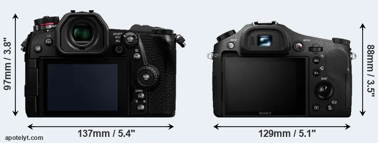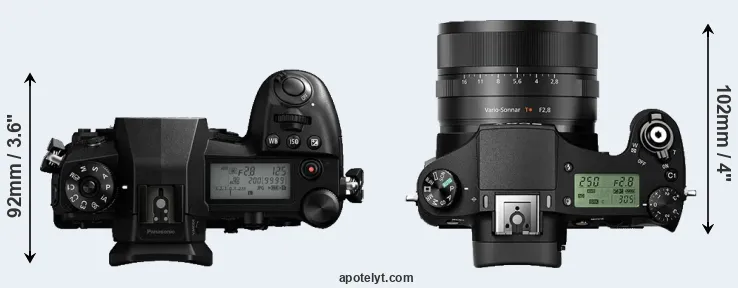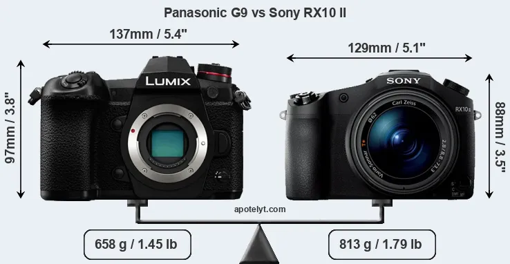 La Panasonic Lumix DC-G9 y la Sony Cyber-shot DSC-RX10 II son dos cámaras digitales que fueron reveladas al público, respectivamente, en noviembre de 2017 y junio de 2015. La G9 es una cámara de objectivos intercambiables sin espejo, mientras que la RX10 II es una cámara compacta con objectivo incorporada. Las cámaras son equipados con un sensor de cuatro tercios (G9) y un sensor de 1 pulgada (RX10 II). La Panasonic tiene una resolución de 20,2 megapíxeles, mientras que la Sony proporciona 20,0 MP.