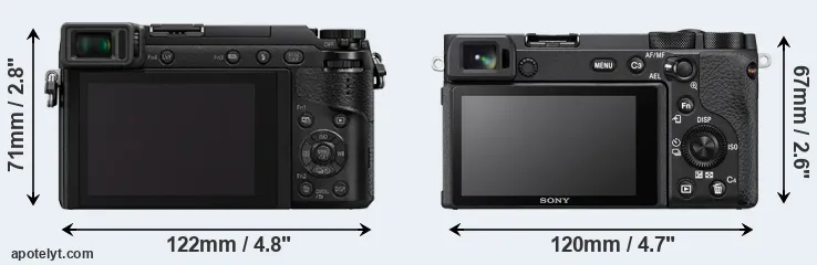 El tamaño físico y el peso de Panasonic GX80 y Sony A6600 se ilustran en el siguiente gráfico. Las dos cámaras se muestran según su tamaño relativo. Todas las dimensiones están redondeadas al milímetro más cercano.