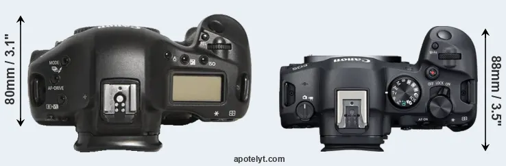| 13. | Canon R3 | 150 mm | 143 mm | 87 mm | 1015 g | 760 | Y | Sep 2021 | US$ 5 999 | amazon.com | |