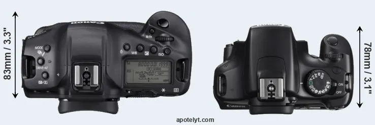 | 9. | Canon 5D Mark III | 152 mm | 116 mm | 76 mm | 950 g | 950 | Y | Mar 2012 | US$ 3 499 | ebay.com | |