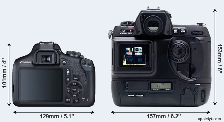 | 13. | Nikon D1 | 157 mm | 153 mm | 85 mm | 1100 g | .. | Y | Jun 1999 | US$ 5 499 | ebay.com | |