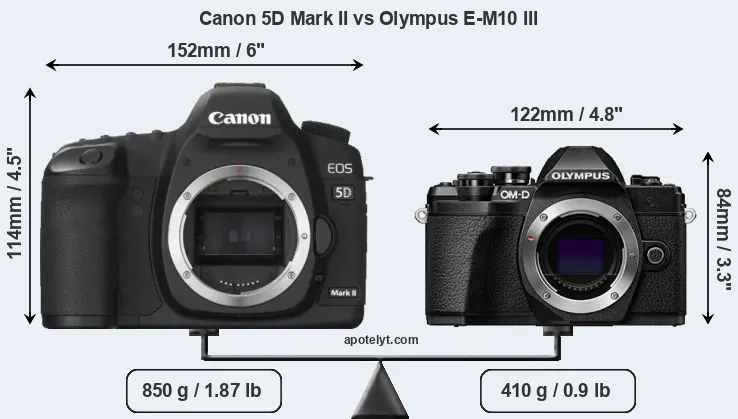 Size Canon 5D Mark II vs Olympus E-M10 III