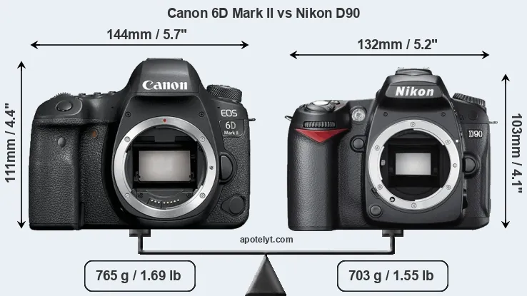 Size Canon 6D Mark II vs Nikon D90