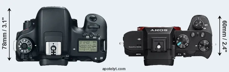 | 3. | Canon 77D | 131 mm | 100 mm | 76 mm | 540 g | 600 | n | Feb 2017 | US$ 899 | ebay.com | |