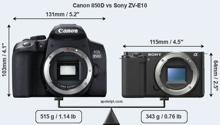 Size Canon 850D vs Sony ZV-E10