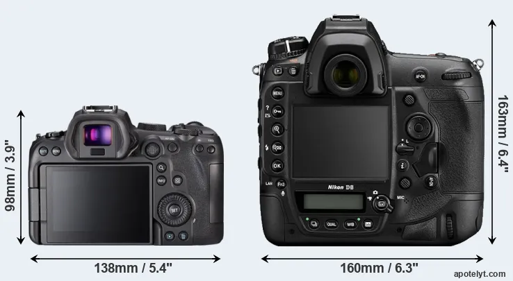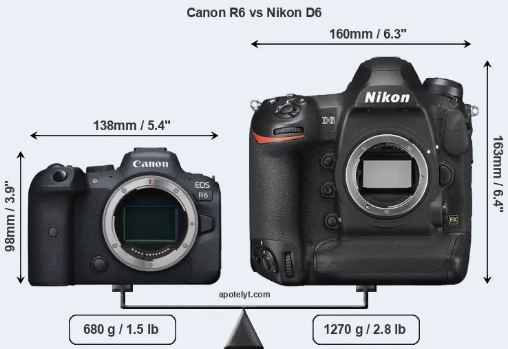 Size Canon R6 vs Nikon D6
