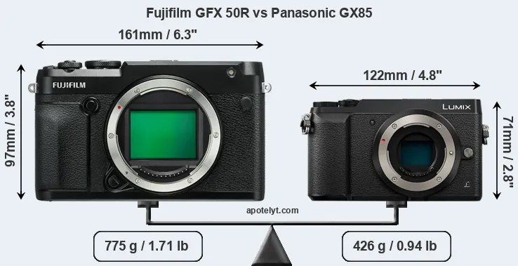 Size Fujifilm GFX 50R vs Panasonic GX85