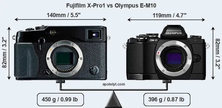 Size Fujifilm X-Pro1 vs Olympus E-M10