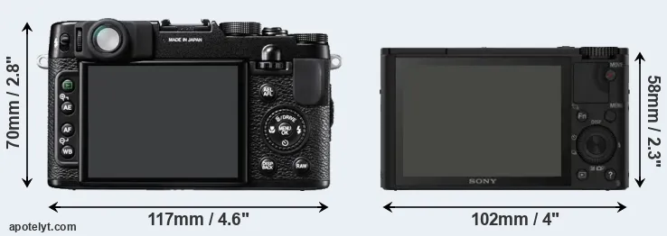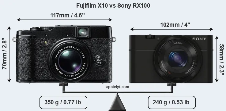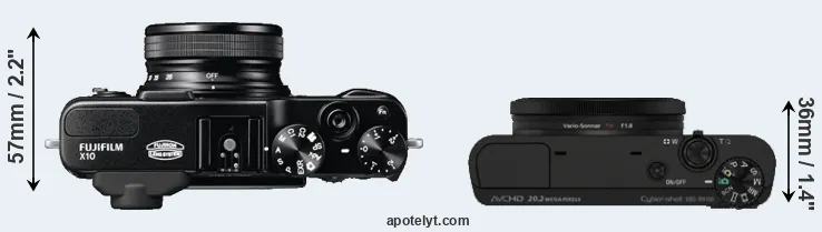La taille physique et le poids du Fujifilm X10 et du Sony RX100 sont illustrés dans le graphique ci-dessous. Les deux caméras sont affichées en fonction de leur taille relative. Toutes les dimensions sont arrondies au millimètre près.