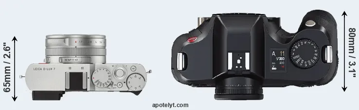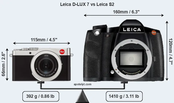 Le Leica D-LUX 7 et le Leica S2 sont deux appareils photo numériques, qui ont été révélés au public, respectivement, en November 2018 et September 2008. Le D-LUX 7 est un appareil photo compact à objectif intégré, tandis que le S2 est un appareil photo reflex numérique. Les caméras sont équipés d'un capteur quatre tiers (D-LUX 7) et un capteur moyen format (S2). Le D-LUX 7 a une résolution de 16,8 mégapixels, alors que le S2 fournit 37,5 MP.