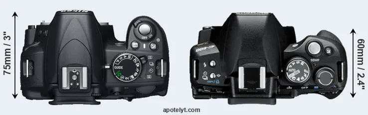 | 5. | Nikon D60 | 126 mm | 94 mm | 64 mm | 522 g | 500 | n | Jan 2008 | US$ 629 | ebay.com | |