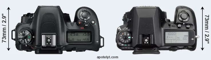 | 1. | Nikon D7500 | 136 mm | 104 mm | 73 mm | 720 g | 950 | Y | Apr 2017 | US$ 1 299 | amazon.com | |