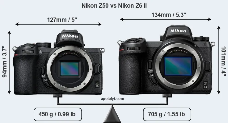Le Nikon Z50 et le Nikon Z6 II sont deux appareils photo numériques, qui ont été révélés au public, respectivement, en October 2019 et October 2020. Les deux sont des appareil photo à objectif interchangeable sans miroir, qui sont équipés d'un capteur APS-C (Z50) et un capteur plein format (Z6 II). Le Z50 a une résolution de 20,7 mégapixels, alors que le Z6 II fournit 24,3 MP.
