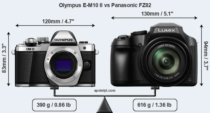Size Olympus E-M10 II vs Panasonic FZ82