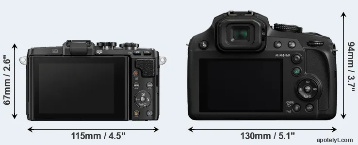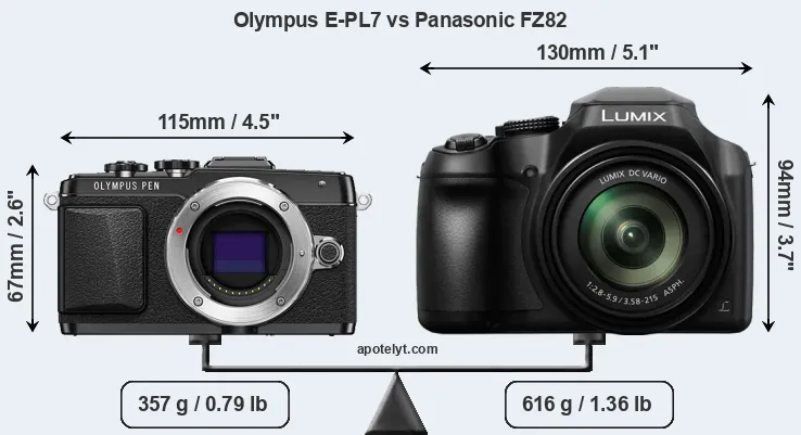 La taille physique et le poids du Olympus E-PL7 et du Panasonic FZ82 sont illustrés dans le graphique ci-dessous. Les deux caméras sont affichées en fonction de leur taille relative. Toutes les dimensions sont arrondies au millimètre près.